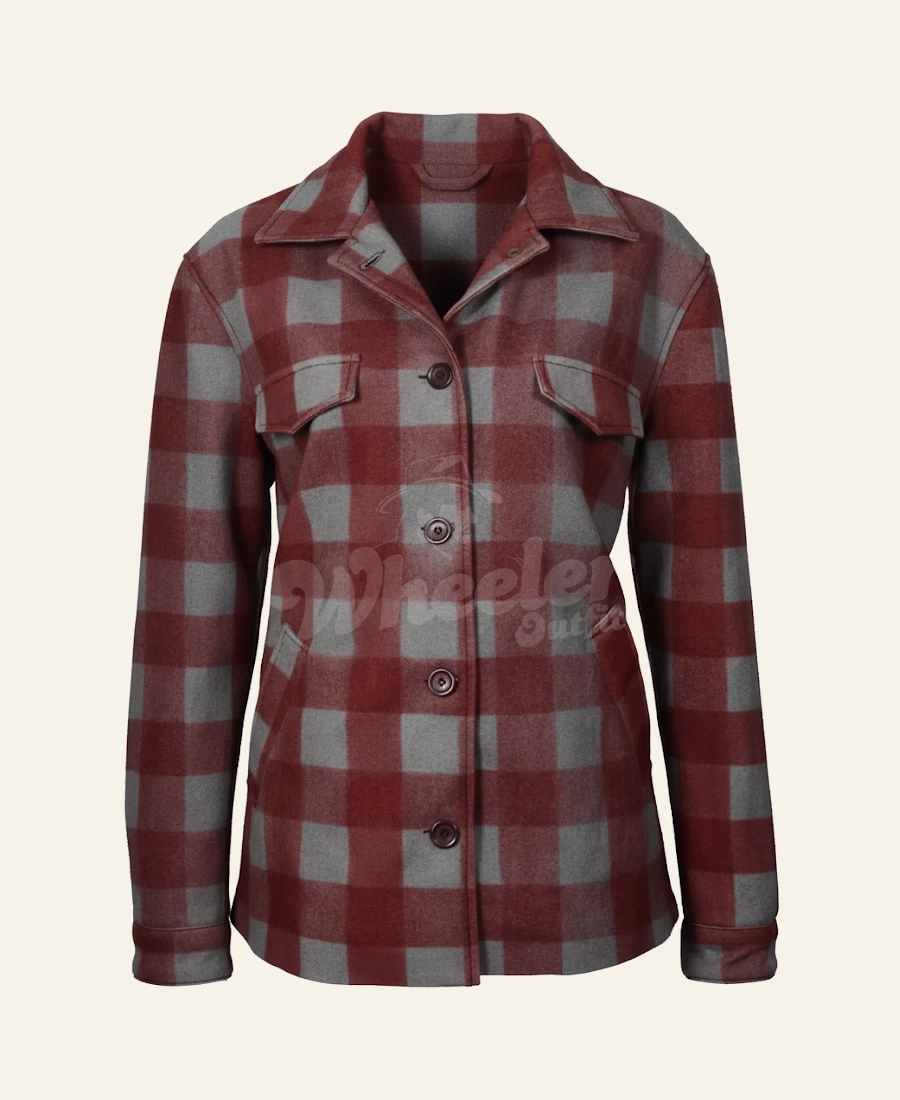 In Episode 10 of Yellowstone Season 2 Beth Dutton wears this beautiful maroon wool coat while reading a heartfelt letter from John to Rip, in which as a thank you, John gave Rip a ranch cabin because he rescued Beth. It’s a quiet but powerful scene that shows her softer side and this Beth Dutton Maroon Blazer Coat fits the scene perfectly as it is very decent and gives calm vibes. We can say that this coat is a perfect mix of comfort, confidence and western style.