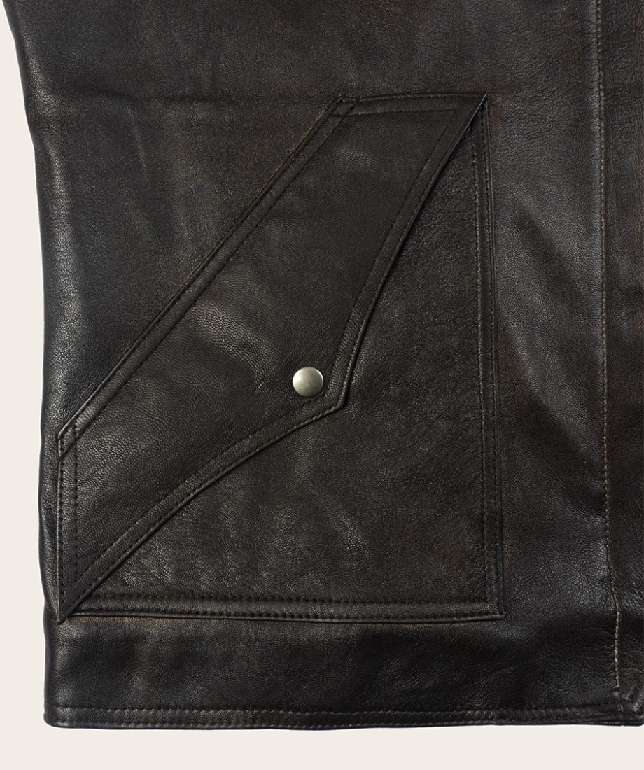Find a very soft sherpa lining attached to the inner shell, complementing the sherpa collar. It provides beautiful warmth that is perfect for the crisp, open-air atmosphere of the Wild West. The twin pockets align with the inbuilt pockets on the inner side, providing enough storage to carry the essentials. Claim your genuine leather vest today and wear history.