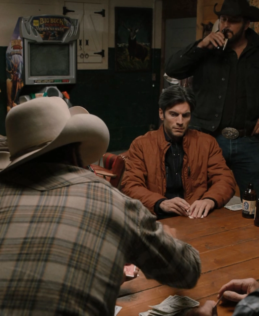 Yellowstone S2 Jamie Dutton Burgundy Cotton Jacket wearing a brown quilted jacket front Image