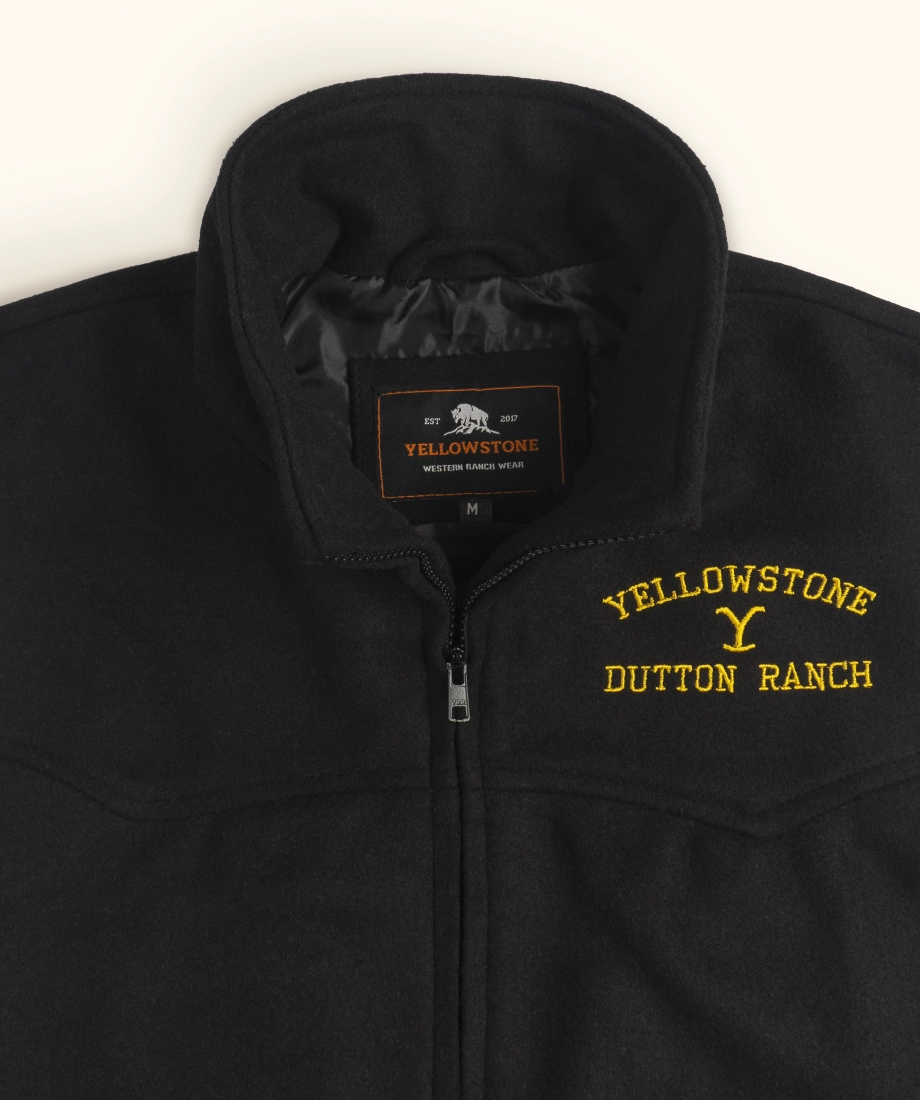 Made with premium quality wool, the Dutton Ranch vest offers unmatched durability and only gets better with time. The black color offers a classy yet rugged style that aligns well with John's nature, calm but bold. His style is further defined with the standup collar and Yellowstone Dutton Ranch written in yellow at the chest. The zipper front delivers ease and durability with a secure fit.
